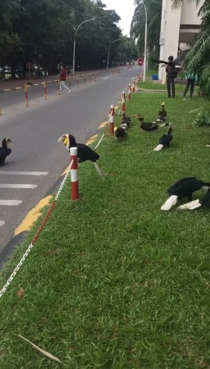 សត្វកេងកងដែលជាសត្វកម្រ បាននាំគ្នាទាំងហ្វូង ហើរមកចុះចតនៅលើដំបូលអគារ និងក៏ដូចក្នុងទីធ្លា នៃមជ្ឈមណ្ឌលសហប្រតិបត្តិការកម្ពុជា-ជប៉ុន (CJCC) និងសាកលវិទ្យាល័យភូមិន្ទភ្នំពេញ កាលពីព្រឹកថ្ងៃទី១ ខែធ្នូ ឆ្នាំ២០២០ ។
